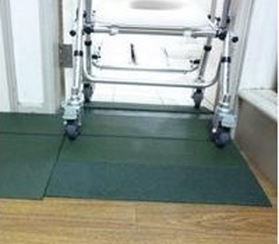 可一塊斜坡磚解決輪椅跨越門檻的問題 , 無須像模組式斜坡磚用拼湊的方式